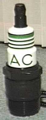 It's a working plastic telephone shaped like an AC Sparkplug. Made in Taiwan in 1985 by Synanon, it stands about 10" tall and the buttons are on the underside. It hangs up when you set it down. |