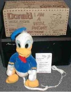 The Donald Duck Phone £39.99. Depicts Donald Duck sunbathing on the beach. Dimensions - 230 X 230 X 200 cm. Phone Features - Last number redial, Ringer on/off switch, In-use light. |